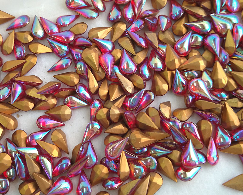 ヴィンテージ/ドイツ/ガラス/ルビーオーロラ/10×6mm(4個)