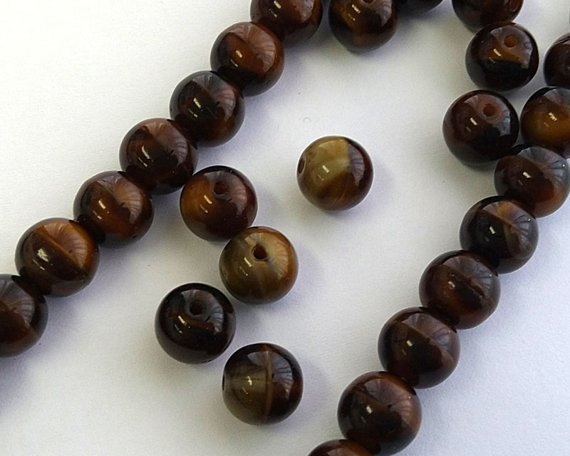 デッドストック/チェコ/ブラウンマーブル/約8mm(4個)