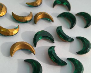 ヴィンテージ/ドイツ/ガラスストーン/クレセントムーン/エメラルド/約14×5mm(1個)