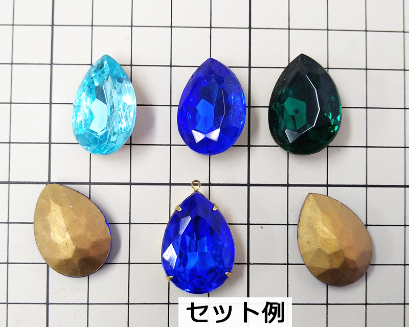 ヴィンテージ/ガラス/チェコ/ドロップ/エメラルド/25×18mm(1個)
