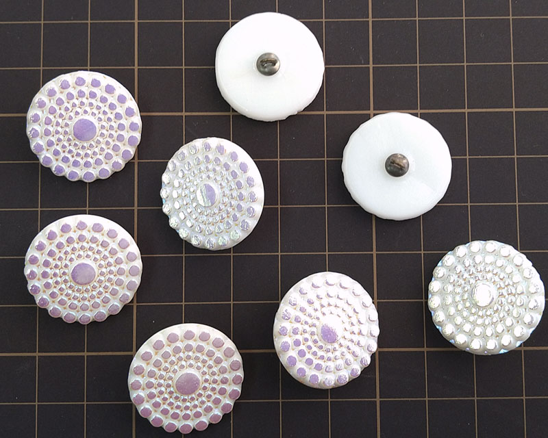 ヴィンテージ/チェコ/ガラスボタン/ホワイトドットオーロラ/約18mm(1個)