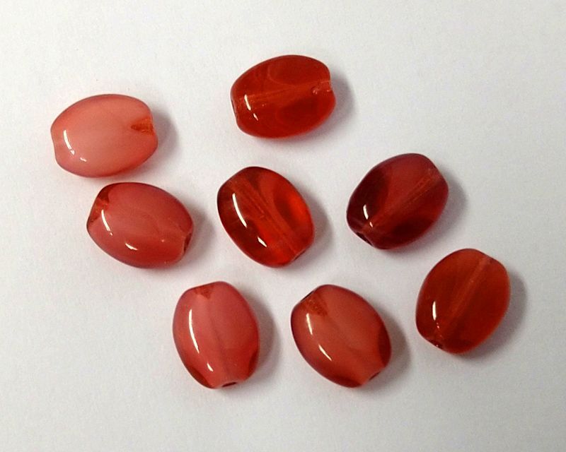 チェコガラスビーズ/フラットオーバル/レッドホワイト/約8×6mm(4個)