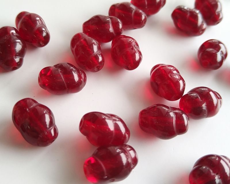 チェコガラスビーズ/ツイストバレル/シャムルビー/約12×8mm(6個)