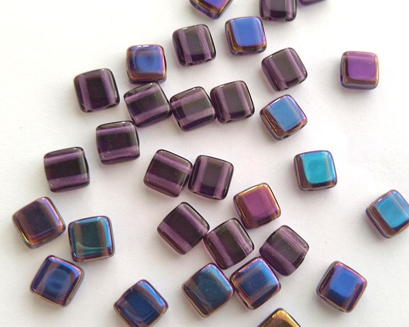 チェコガラスビーズ/2ホールタイル/トワイライトアメシスト(10個)