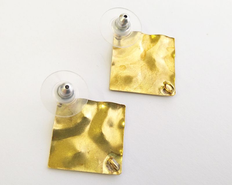 メッキなし真鍮/ステンレスポストピアス/ウエーブスクエア(1ペア)