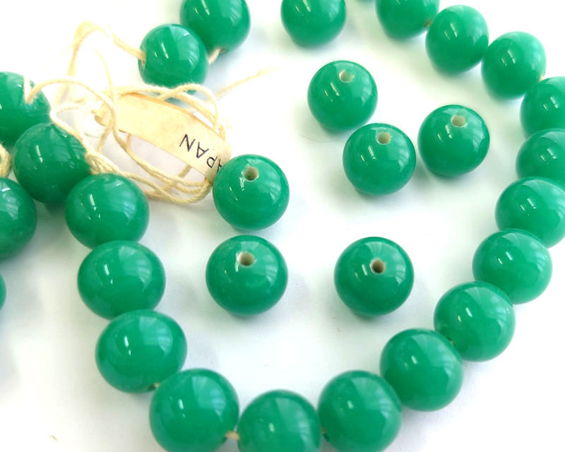 ヴィンテージ/日本/ランプワークビーズ/ジェイドグリーン/ラウンド(1個)