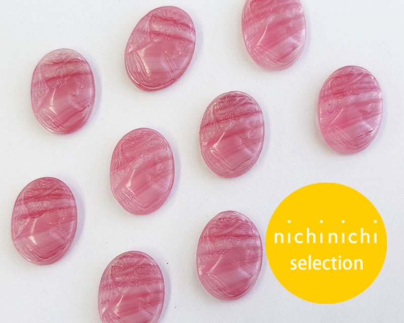 ns334/ヴィンテージ/ドイツ/ガラスカメオ/ローズホワイトストライプ(1個)