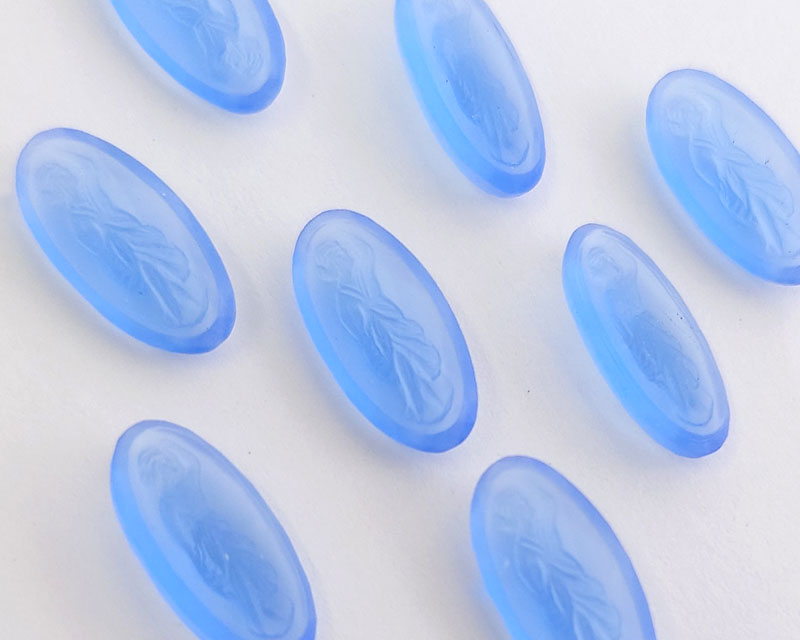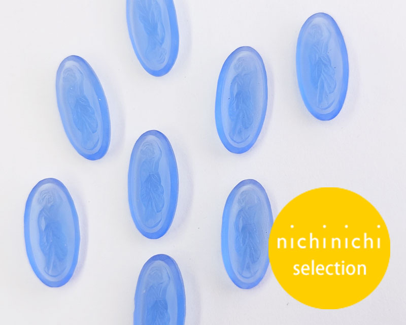 ns224/ヴィンテージ/ドイツ/ガラスストーンレリーフ/オーバル/フロストブルー/約18×9mm(1個)