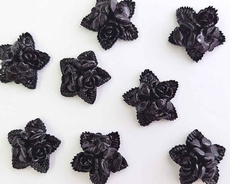 ヴィンテージ/日本/プラスチック/スターフラワー/ブラック/16mm(1個)
