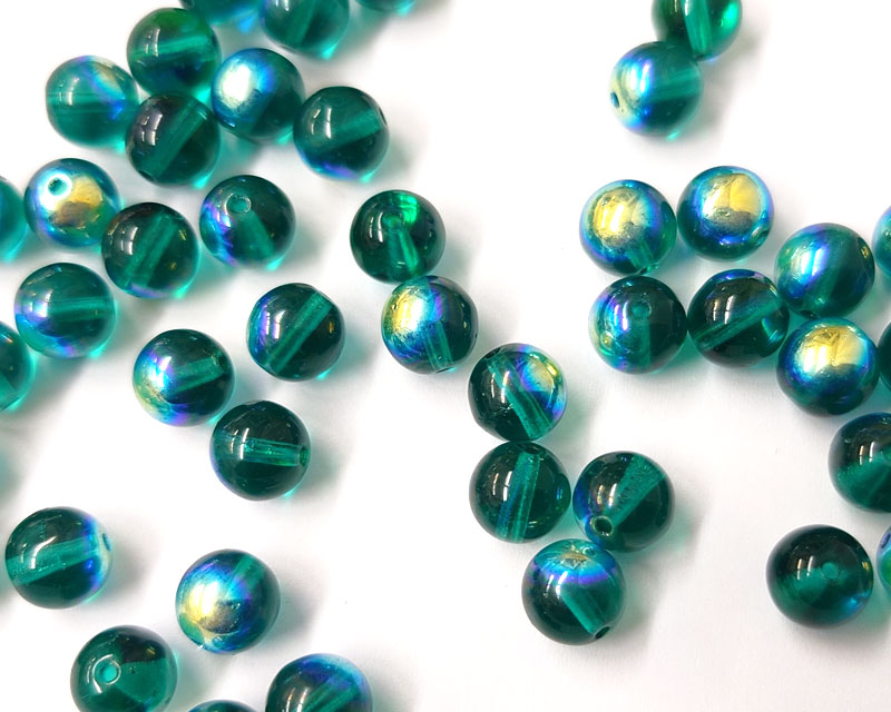 チェコガラスビーズ/ラウンド/エメラルドオーロラ/約8mm(10個)