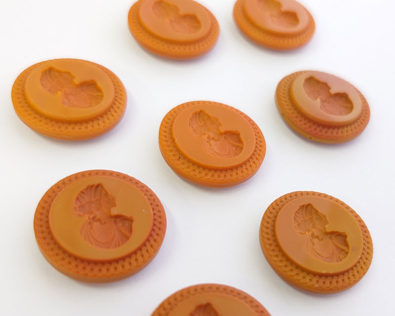 ns374/ヴィンテージ/ドイツ/ガラス/ラウンドレリーフ/テラコッタ/約21mm