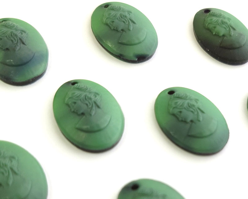 ns375/ヴィンテージ/ドイツ/ガラスカメオペンダント/グリーンブラック/約18×13mm(1個)