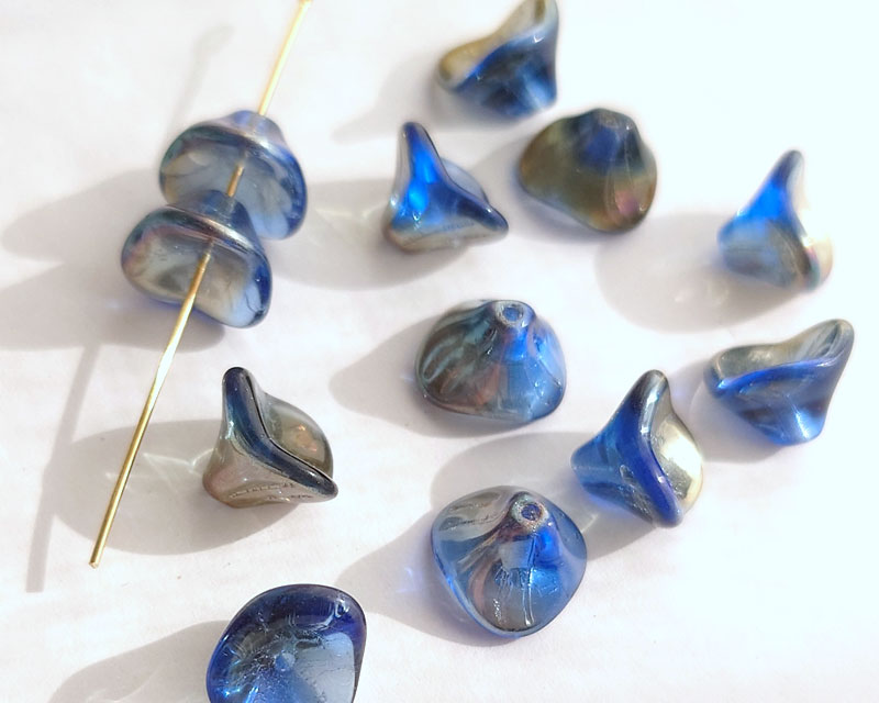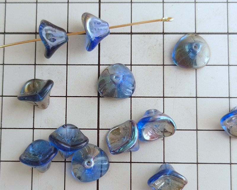 チェコガラスビーズ/スリーペタルフラワー/サファイアセルシアン(2個)