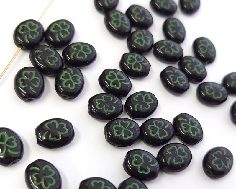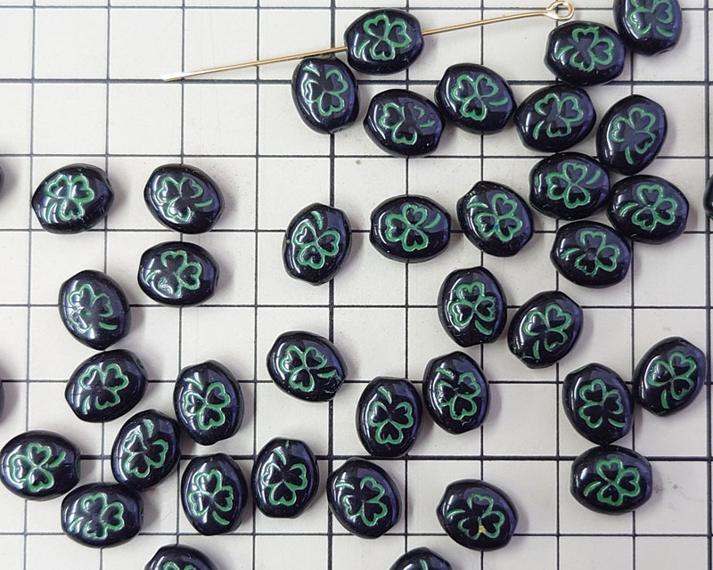 チェコガラスビーズ/クローバー/ブラック×グリーン(6個)