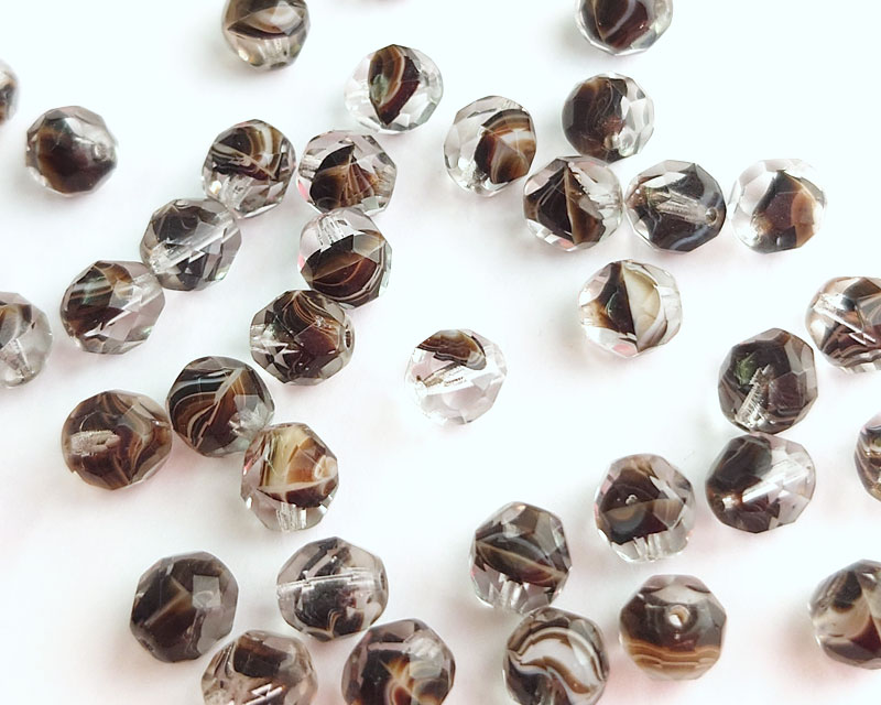 チェコガラスビーズ/ファイアポリッシュ/8mm/クリア×ブラウンストライプ(6個)