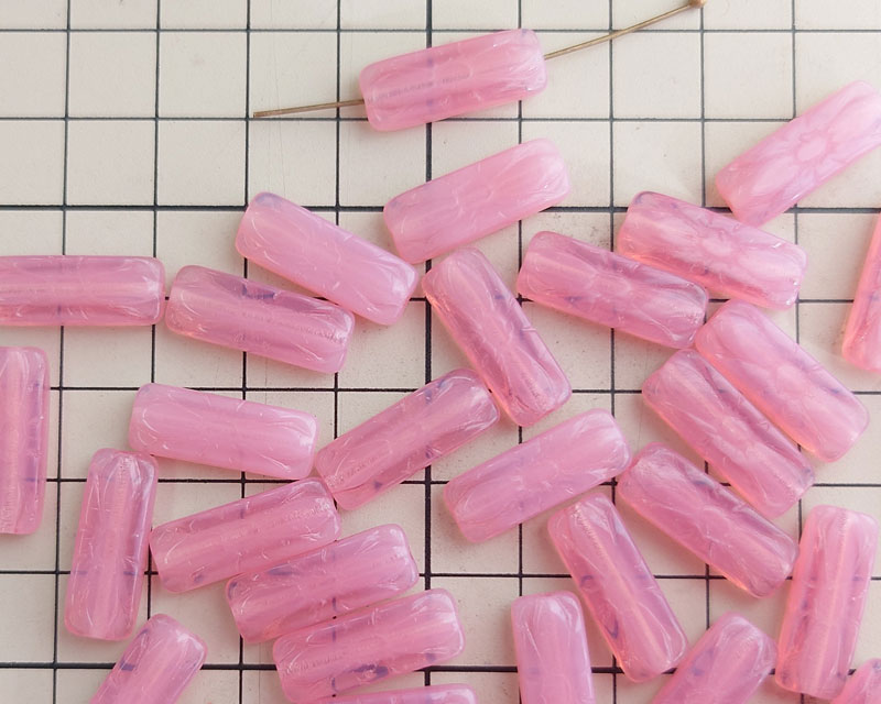チェコガラスビーズ/レクタングルフラワー/ピンクオパール(2個)