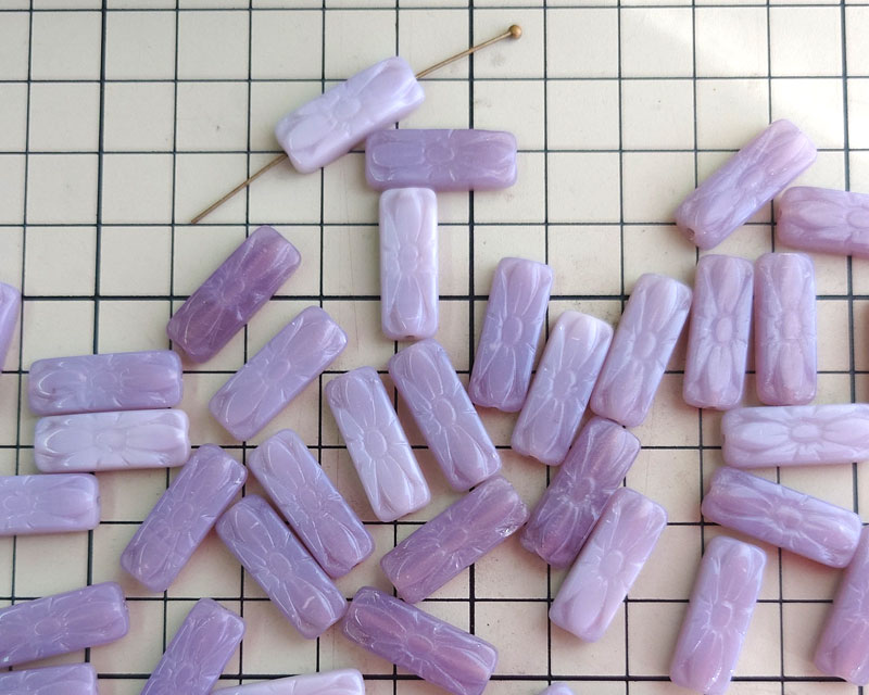 チェコガラスビーズ/レクタングルフラワー/ミルキーパープル(2個)
