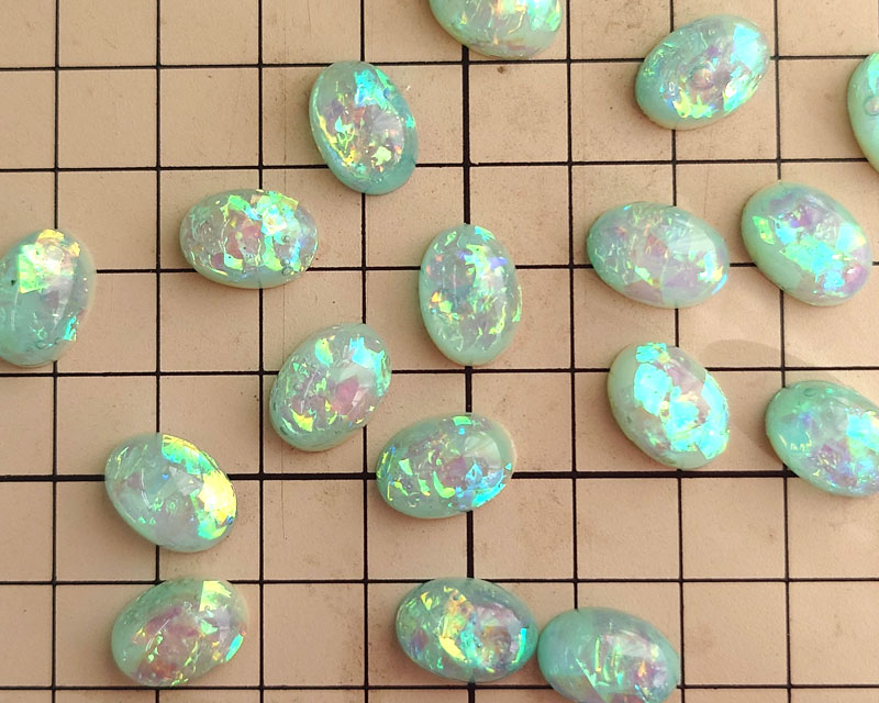デッドストック/日本/樹脂カボション/ミントホログラム/約14×10mm(1個)