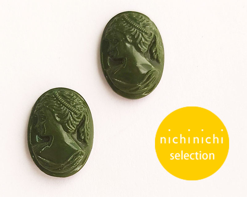 ns334/ヴィンテージ/ドイツ/ガラスカメオ/ダークグリーン(1個)