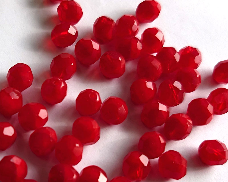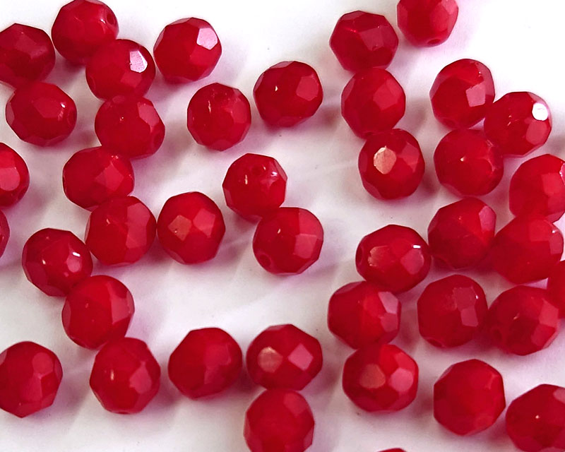 チェコガラスビーズ/ファイアポリッシュ/8mm/チェリーレッドマーブルミックス(6個)