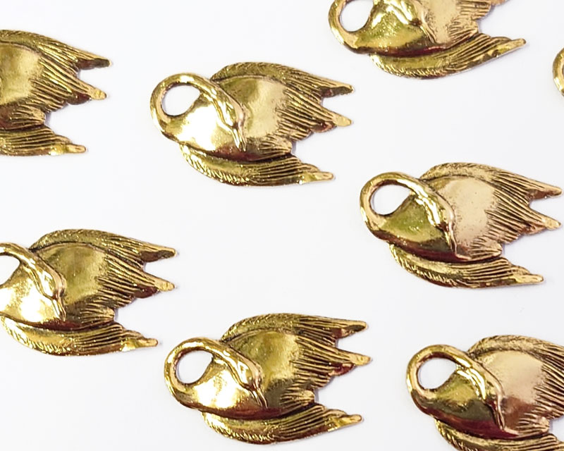 ブラススタンピング/USA/墨入りゴールド/白鳥(1個)
