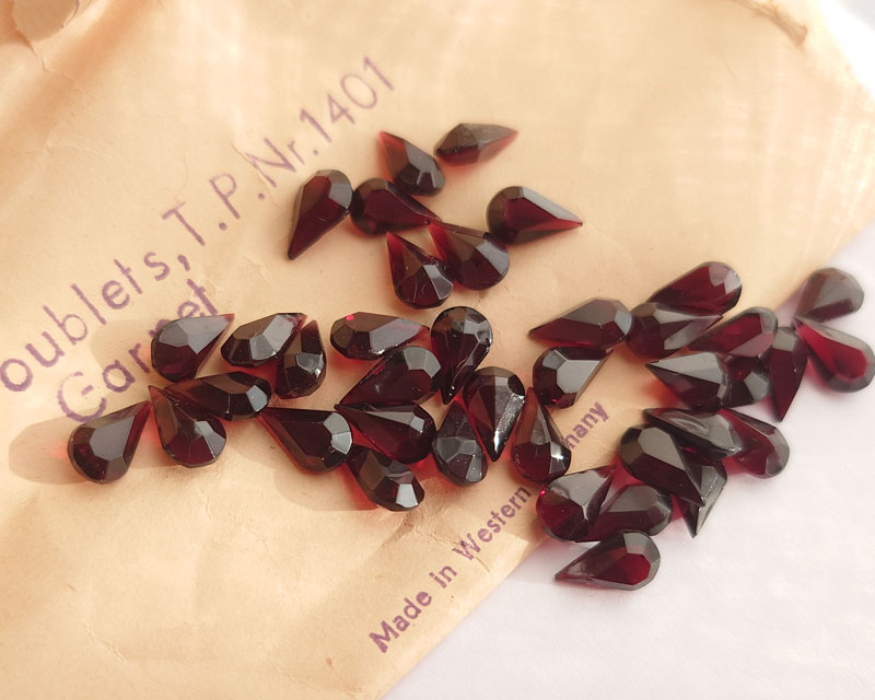 ヴィンテージ/ドイツ/ガラス/ガーネット/10×6mm(2個)
