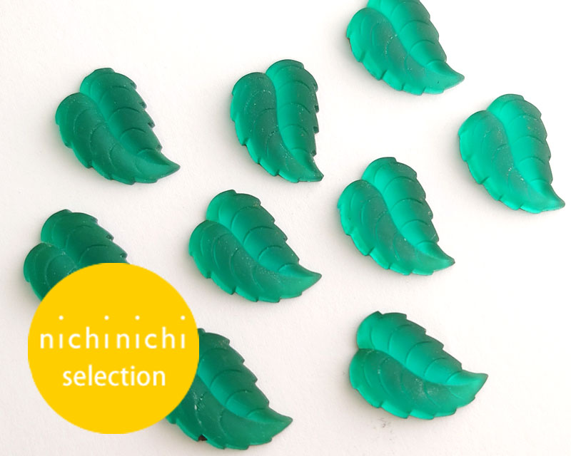 ns326/ヴィンテージ/ガラスカボション/フロストリーフ/エメラルド(1個)