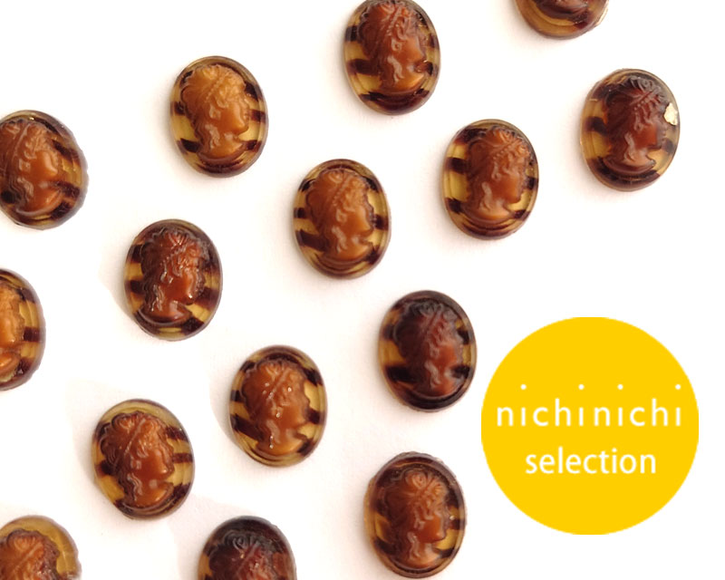 ns363/ヴィンテージ/ドイツ/ガラスカメオ/ブラウンマーブル/約10×8mm(1個)