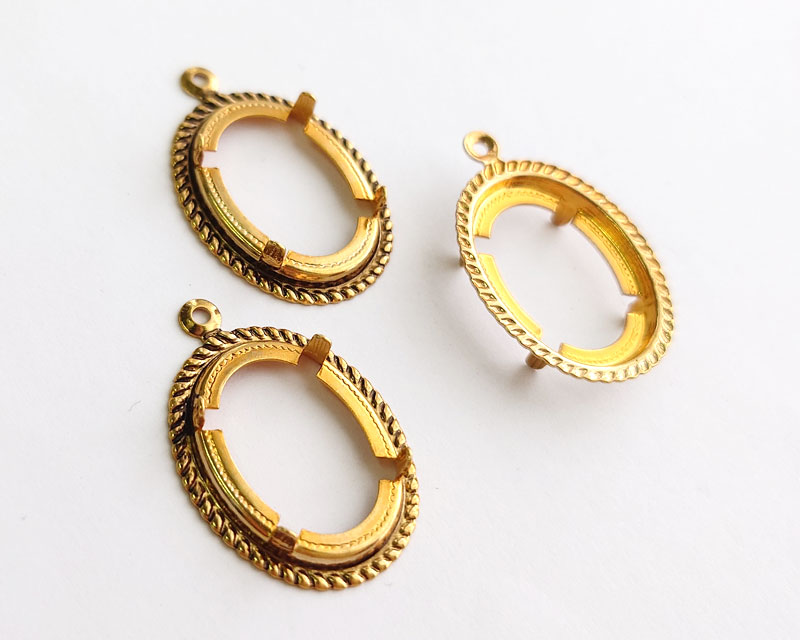 セッティング/ブラス/18×13mm用ロープオーバル/墨入り赤めゴールド(1個)