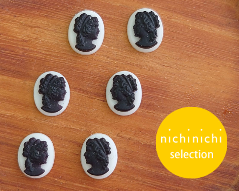 ns363/ヴィンテージ/ドイツ/ガラスカメオ/ホワイト×ブラック/約10×8mm