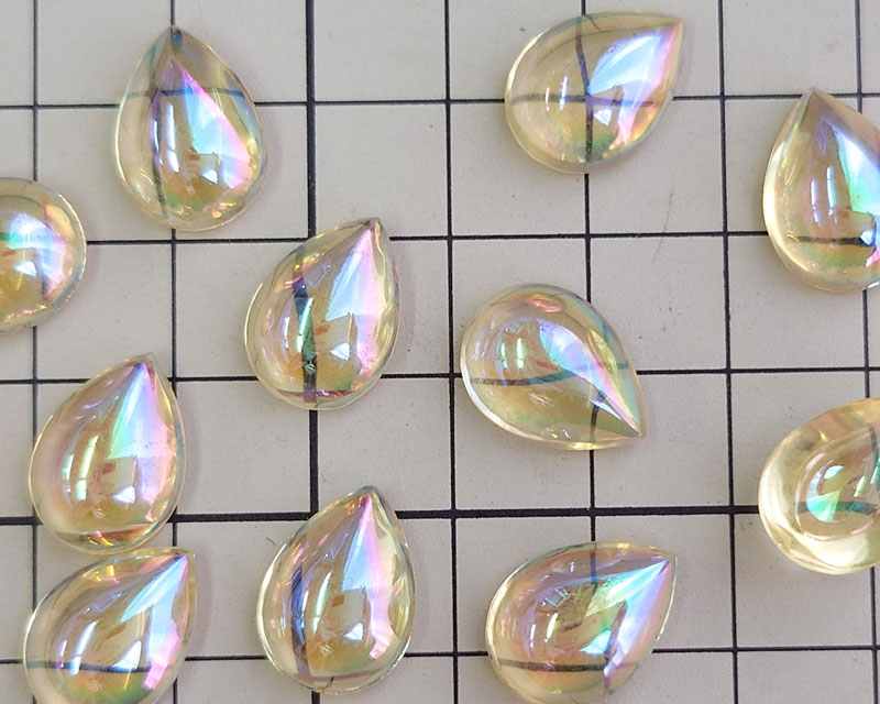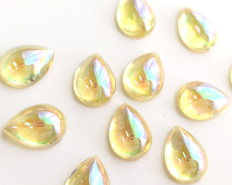 ヴィンテージ/チェコ/ガラスストーン/イエローオーロラ/15×11mm(1個)