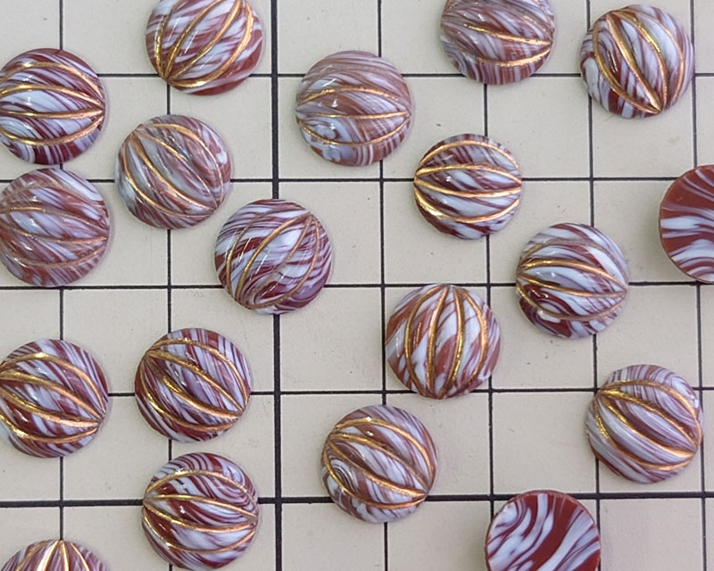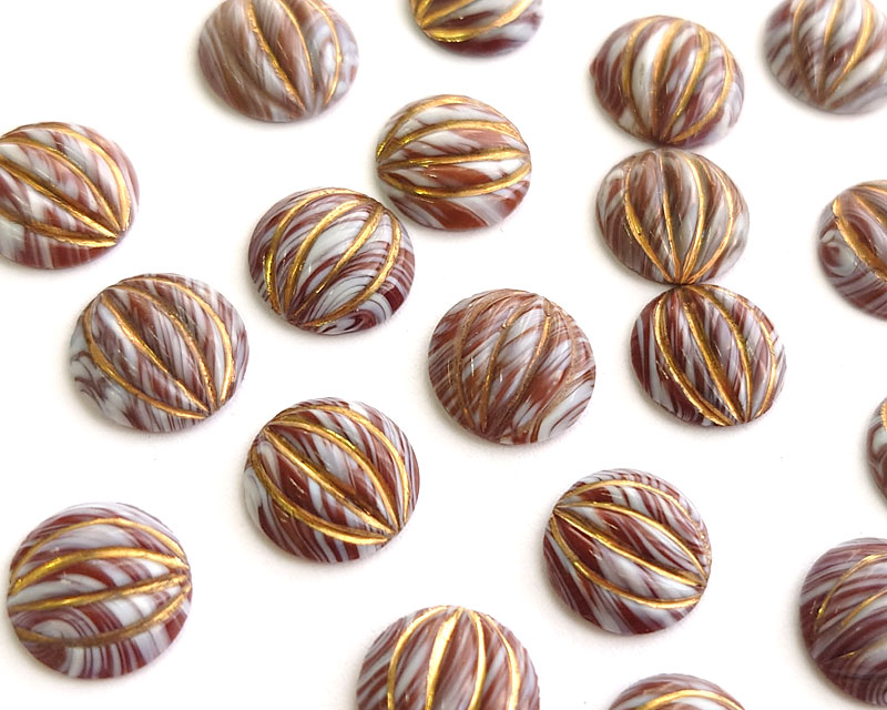 ヴィンテージ/チェコ/ガラスカボション/ブラウンマーブルゴールド/約11mm(1個)