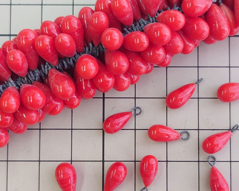 ヴィンテージ/日本/ピン付ドロップ/レッドマーブル(8個)