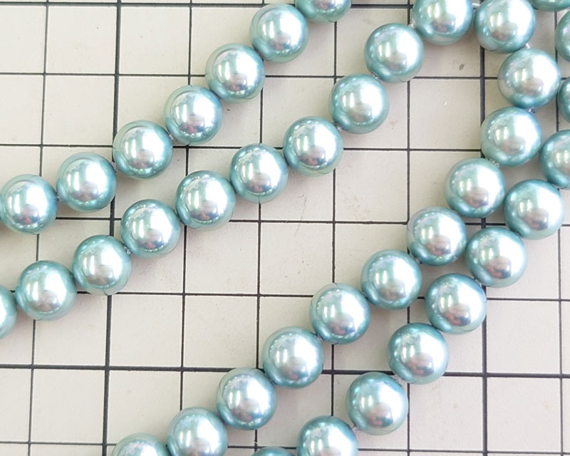 ヴィンテージ/チェコ/ガラスパール/ブルーグリーン/約8mm(4個)