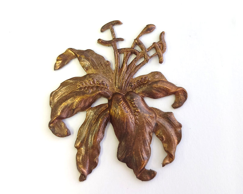 ヴィンテージ/ブラススタンピング/ユリの花(1個)