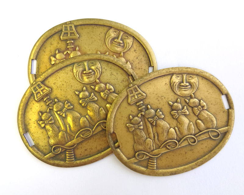 ヴィンテージ/ブラススタンピング/夜の猫たち(1個)