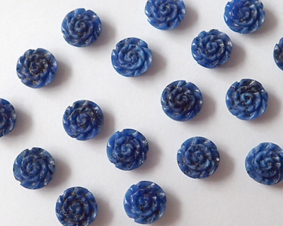 ヴィンテージ/チェコ/ガラスカボション/ブルーブラックローズ/約8mm(2個)