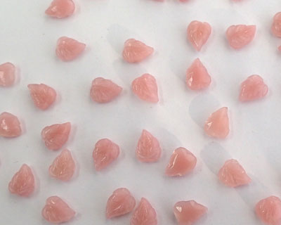 ヴィンテージ/チェコ/ガラスパーツ/ピンクムーンリーフ(4個)