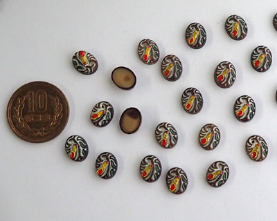 ヴィンテージ/ガラスカボション/ハンドペイントバード/約10×8mm(1個)