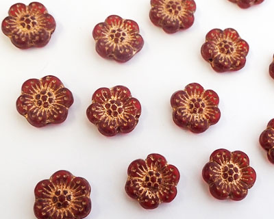 チェコガラスビーズ/6ペタルフラワー/14mm/マットレッド×ブロンズ(2個)