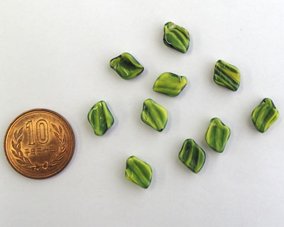 チェコガラスビーズ/リーフ/イエロー×グリーン×ブラック(10個)