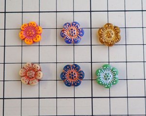 チェコガラスビーズ/6ペタルフラワー/14mm/ミルキーブルー×ブロンズ(2個)