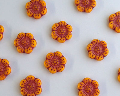 チェコガラスビーズ/6ペタルフラワー/14mm/マンゴー×ピンク(2個)