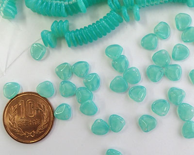 チェコガラスビーズ/ローズペタル/ミルキーグリーン(ウラン)/8mm(10個)