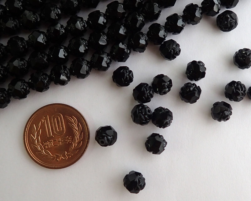 チェコガラスビーズ/ローズバド/ジェットブラック/8mm(6個)