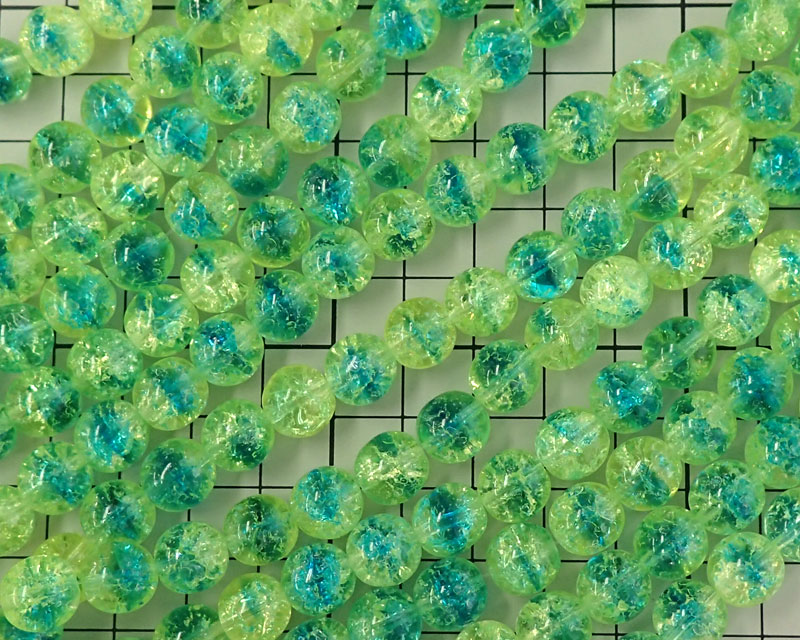 チェコガラスビーズ/クラックルラウンド/グリーン×アクア/10mm(6個)