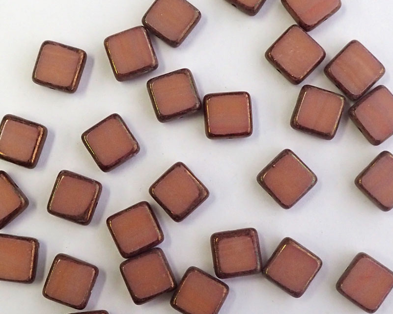 チェコガラスビーズ/フラットスクエア/ピンクマーブルピカソ/10mm(2個)